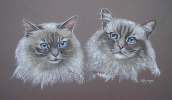 Pet Portraits in Pastel by Sally Logue - UK animal portrait artistCat Portraits - double |